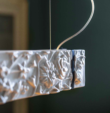 Lámpara FREGIO, diseño de Andrea Anastasio en 2023 para Foscarini. Un mezcla de belleza y tecnología, uniendo materiales como la cerámica decorada y la tecnología LED. El resultado es un objetocon un excelente poder luminoso, ideal para iluminar zonas de trabajo y comedor. Disponible en tres colores; Blanco, Azul y Rojo. Solo tienes que elegir el mas adecuado a tu concepto decorativo. Consultar otras versiones.